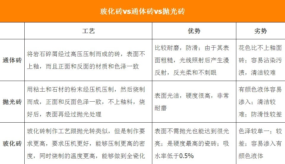 玻化磚與通體磚、拋光磚的優(yōu)劣性及價(jià)格對(duì)比
