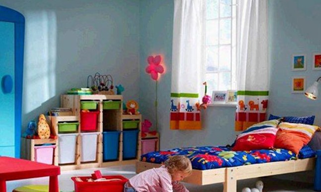 兒童房的配飾和配色要配合孩子活潑好動的天性。啟迪性的色彩和趣味化的設(shè)計,最符合兒童的心理。紅色、藍(lán)色、綠色、黃色能讓孩子擁有一個歡樂的色彩空間,也加強了孩子的思維靈活度。