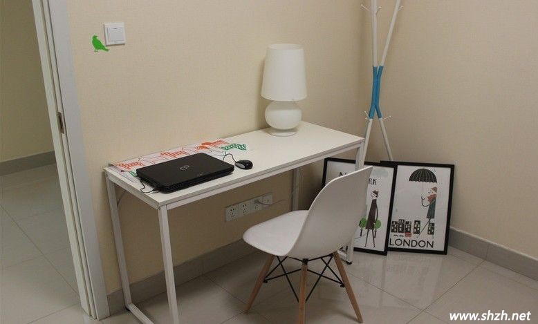 書房的裝修的很簡單,桌子上面擺著純白歐式的臺(tái)燈,開光處那一綠色小鳥讓人眼前一亮,主人裝修時(shí),地上擺放的裝飾花,也處處點(diǎn)綴著綠意。地中海式的簡易沙發(fā)很浪漫。