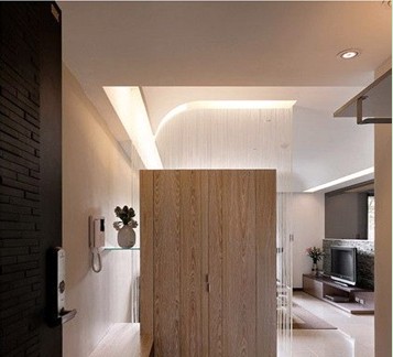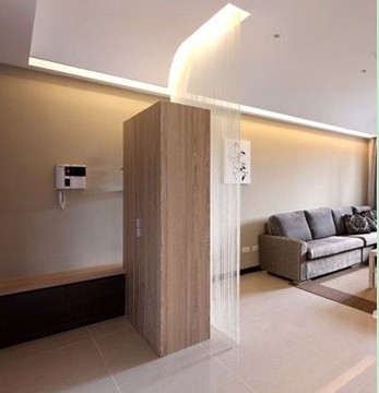 這張圖片詮釋的是原木的進(jìn)門鞋柜!把進(jìn)門區(qū)域與走道及客餐廳分開!后面珠簾裝飾也是為了分開走道區(qū)域與客廳區(qū)域