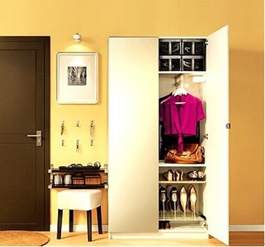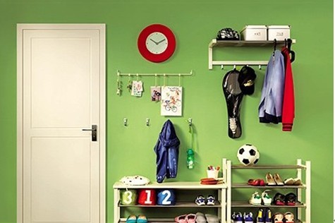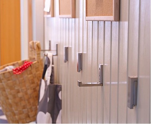 上方則專屬于是父母的儲(chǔ)物區(qū);另外,為了避免空間的浪費(fèi),在柜子中間空出的部分可以安裝一些小掛鉤,用來掛鑰匙或者雨傘等常用小物件。