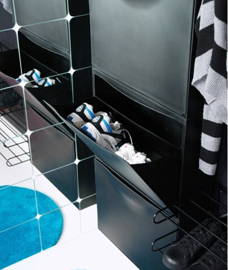 這樣的設(shè)計(jì),則是家里鞋子比較所的家庭的親耐。有時(shí)候一個(gè)鞋架放不下家人所有的鞋子,那就利用垂直空間。這樣的鞋架可以創(chuàng)建一個(gè)多層鞋柜空間。