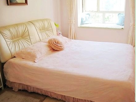 臥室沒有過多的復(fù)雜設(shè)計(jì)。粉粉的床鋪配上那一流蘇,顯得無(wú)盡的浪漫。