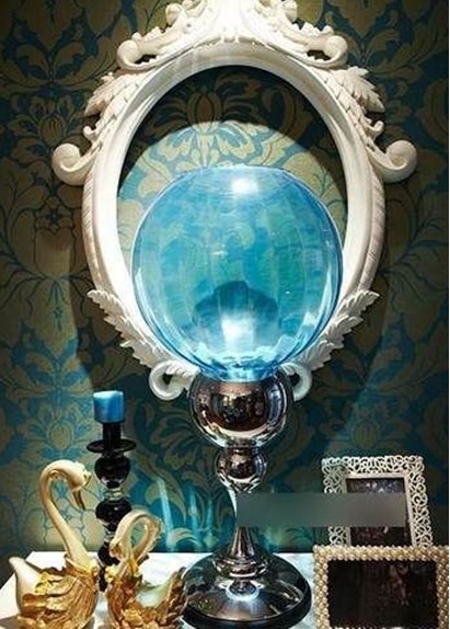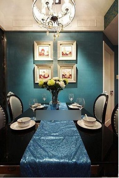 餐廳的吊燈是水晶的,這是不能錯過的,整面墻是帶點藍(lán)色的。