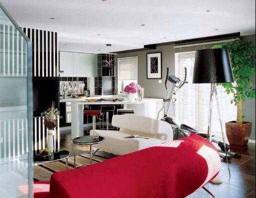 從玄關(guān)處看客廳里,入眼的便是這個(gè)造型獨(dú)特的紅色沙發(fā),活躍了一整層的空間氣氛,讓空間不再單一,呈現(xiàn)外向歡快的一面。