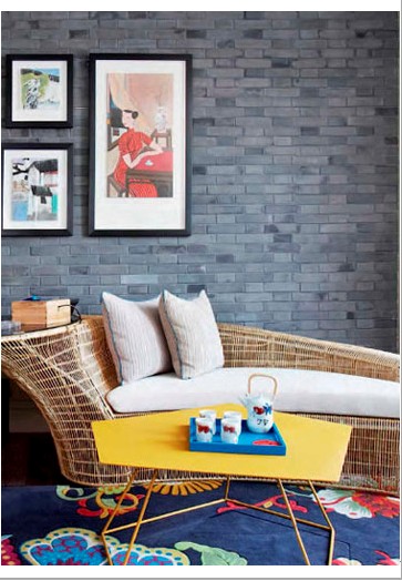 拖去老中的承重的步伐,我們以輕快、時(shí)尚的新中式來(lái)裝點(diǎn)屬于兩個(gè)人的世界。當(dāng)然即使是新中式,也不能一味堆砌中式元素。中式床榻經(jīng)過(guò)改良,線條流暢,時(shí)尚感十足,搭配色彩華麗的地毯,與墻上的裝飾畫(huà)相映成趣,大面積的灰色磚墻,中和了地毯的鮮艷,保持了空間的含蓄低調(diào)。