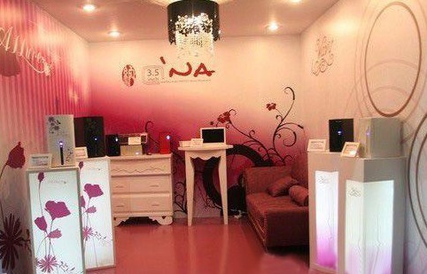 艷粉色的地板,紅色的沙發(fā),白色柜子,紫紅色花朵剪影及漸變色落地?zé)簦浯钌掀G粉色的壁紙,處處充滿(mǎn)著誘惑的神秘感。充滿(mǎn)藝術(shù)感的圖案,帶有前衛(wèi)的時(shí)尚。