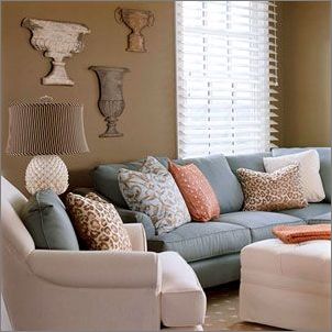 在流行裝飾榜上,藍(lán)色和褐色總是成對(duì)的出現(xiàn),但你一定要找到適合自己口味的搭配。如果你喜歡平淡一點(diǎn)的顏色,那么可以嘗試奶油咖啡色和法式藍(lán)色,同時(shí)搭配傳統(tǒng)一點(diǎn)的家具,比如背景墻和靠墊一類(lèi)的東西,這些便宜的東西可以輕易地變更與裝飾的趨勢(shì)。