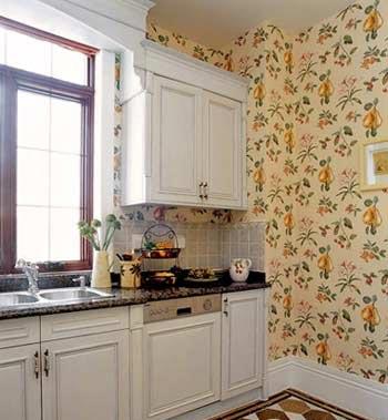 廚房里應(yīng)選擇防水性、透氣性好的壁紙,紙面、膠面比布面或天然材質(zhì)的壁紙更耐用。