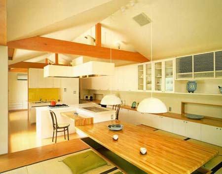 廚房不光要有足夠的收藏空間,還要有足夠的工作空間。有些人喜歡把面包、零嘴、酒油糖鹽,統(tǒng)統(tǒng)放在工作臺面上,其實工作臺面是不適合放很多雜物的。不僅凌亂,而且由于廚房油煙,很快就顯臟了。除了一瓶花什么,一切零散的東西,都應該放進相應的收藏空間。