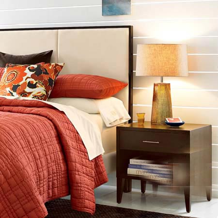 床頭柜應(yīng)該整潔、實(shí)用,不僅可以擺放臺(tái)燈、鏡框或者小花瓶,還可以讓你在床上也能方便地取放任何需要的物品。