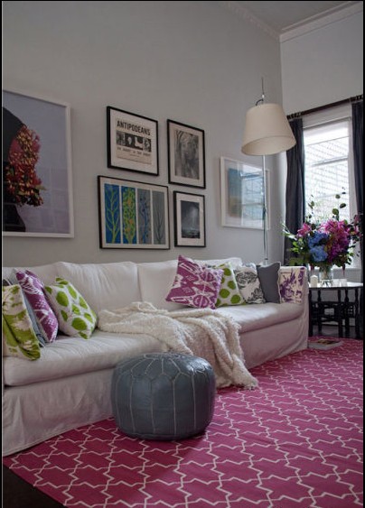 白色是永不落幕的時(shí)尚元素,小客廳里白色的加入調(diào)和了大塊粉紅**塊帶來(lái)的壓抑感,再加入乳白色的布藝沙發(fā),進(jìn)一步調(diào)和了大塊的粉紅**塊,保持室內(nèi)空間的明亮。而沙發(fā)上春天氣息花色的花紋抱枕,又為這個(gè)家居增添了田園的春意。