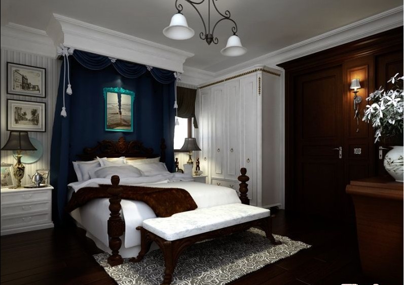 臥室里色彩豐富,隱約中透露著一種貴族的高雅,它可以將奢華與尊貴彰顯的淋漓盡致。