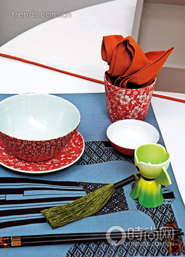 中國(guó)人講究飲食文化,春節(jié)里的家宴更是馬虎不得。讓我們看這個(gè)場(chǎng)景:古雅的花窗下,一場(chǎng)盛宴正要開始。白色圓桌上,年年有“魚”的桌旗上,盛滿了一桌的喜氣洋洋。花朵的杯盤碗碟,是歡喜的紅色,散發(fā)著濃郁的中國(guó)氣息。一笸籮的山楂,映襯著金紅色的鯉魚的圖案,滿目的是鮮亮與快樂。可愛的金魚蛋杯,雖然是最傳統(tǒng)的中國(guó)經(jīng)典圖案和意向,但現(xiàn)代時(shí)尚的設(shè)計(jì)讓我們眼前一亮。這一場(chǎng)盛宴,從形到色,既賞心悅目,又勾起食欲無邊。