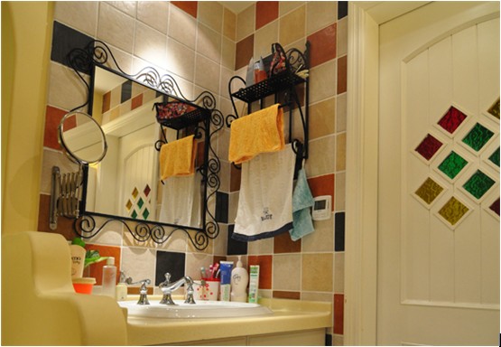 衛(wèi)浴間以溫潤的暖色代替原來希臘風格地中海的藍白色調,這樣的環(huán)境增加了居住的舒適度。淡淡的黃有著陽光的味道,暖暖的很溫馨。