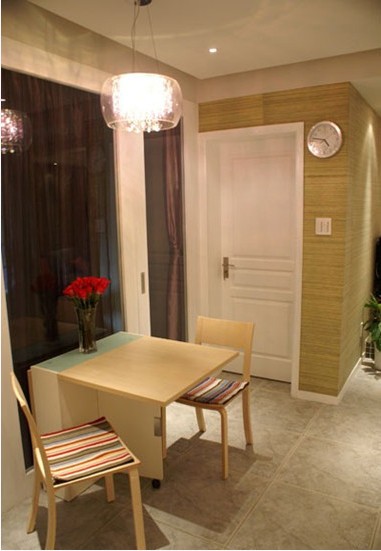 燈具的粉紅色給空間里增添了一絲浪漫情調(diào),日常居家也需要一絲絲浪漫。這個(gè)餐桌與餐椅還有這個(gè)燈具都是業(yè)主MM精心在市場(chǎng)淘來(lái)的,價(jià)格很實(shí)惠哦。每平均價(jià)不到600的情況下還可以做出時(shí)尚現(xiàn)代感現(xiàn)代家居真的是非常能干。
