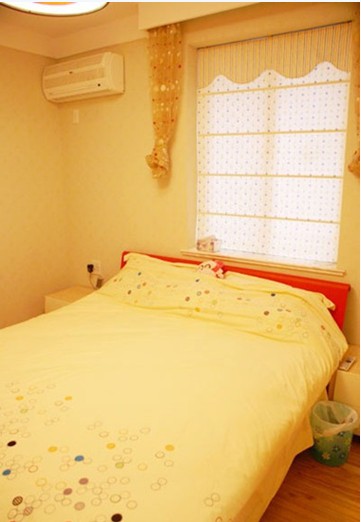 臥室是淡黃色調(diào),就像油菜花一樣多彩。