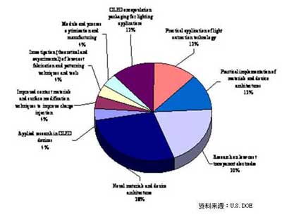 2008年美國固態(tài)照明投入經(jīng)費(fèi)分布