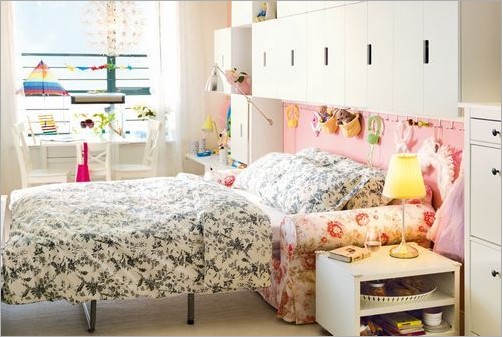 概要: 色調(diào)甜美的粉色系是小朋友們的最愛,兒童房設計不僅僅要考慮到色彩的搭配,在選擇家具方面也要細心的挑選,此套案例打造出了一個夢幻的兒童樂園,色彩清新淡雅、舒適溫馨。由于空間有限在這間臥室內(nèi)的床和沙發(fā)帶有折疊功能,白天可以把床折疊起來,騰出足夠的活動空間。而造型簡潔別致的家具及有效的利用墻面立體空間,又起到靈活的裝飾作用。流線型設計的書桌椅,純凈自然。