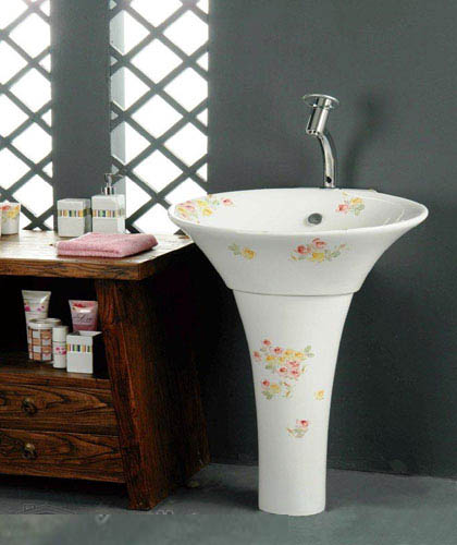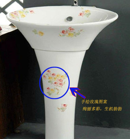 盆體上鏈接龍頭的一側(cè)有高過龍頭的花邊沿,這種設(shè)計(jì)可以有效的避免在洗漱的時(shí)候水濺出盆體外,弄臟地面,此外,在盆體藍(lán)色的花叢中還設(shè)有溢水孔,雙重保護(hù)衛(wèi)浴間的清潔。柱的底面積大于立柱中部的橫截面積,安裝時(shí)增加了整體的穩(wěn)固性。這些人性化的設(shè)計(jì)更加使她贏得了人們的青睞。