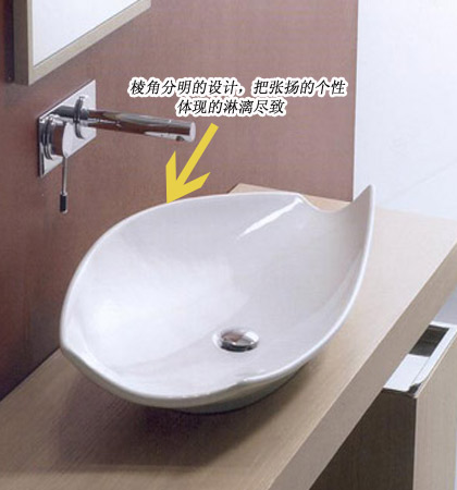 打破了面盆常規(guī)的方型或圓形的設(shè)計(jì),分明的棱角和完美的弧度巧妙結(jié)合,賦予恪守古典和追求時(shí)尚,個(gè)性新的詮釋。這個(gè)完美的結(jié)合,正是迎合當(dāng)代新人追趕潮流的需求。臺(tái)盆更適用于開間較大的衛(wèi)生間,顯得莊重大氣~~
