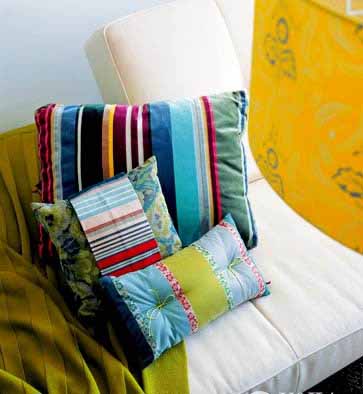 將搭配在沙發(fā)上的靠墊、織品的顏色改變一下,利用草綠、橙黃、湖藍等淺色調,讓居室富有春天的清新氣息。