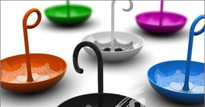 傳統(tǒng)的盤(pán)體被設(shè)計(jì)成了傘面的樣子,同時(shí)在盤(pán)內(nèi)增加了一個(gè)傘把的設(shè)計(jì),這樣一來(lái),就可以直接拎著盤(pán)子了。不僅非常有趣,設(shè)計(jì)也很美觀(guān)。