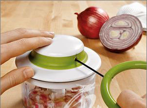 它的原理與普通的攪拌機(jī)類(lèi)似,不同之處在于采用了全手動(dòng)的設(shè)計(jì),只要將洋蔥放進(jìn)去,然后用力拉扯上面的繩子,就可以迅速將洋蔥切碎了。