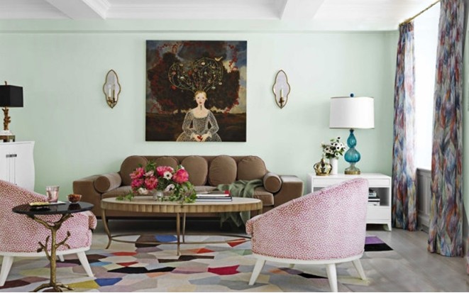 概要: 這是一個(gè)鐘情歐美現(xiàn)代的家。 客廳對(duì)于家庭來(lái)說(shuō)是生活的中心。一走進(jìn)客廳會(huì)讓你來(lái)到了童話(huà)般的世界里,簡(jiǎn)易的天花石膏吊頂,簇絨的沙發(fā)面料,配上橢圓形的茶幾,給室內(nèi)增添無(wú)限魅力。薄荷綠的墻面帶你進(jìn)入貼近自然的感覺(jué),豹紋的粉色單椅,多彩繽紛的彩色窗簾和地毯,淺色的實(shí)木地板,還有充滿(mǎn)想像空間的畫(huà)。都會(huì)讓你有一種很怯意的舒服感,讓人有一種每天一下班就想回家的感覺(jué)。