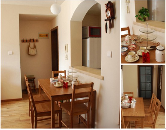 玄關(guān)處設(shè)計(jì)實(shí)用美觀,進(jìn)門便可將餐廳盡收眼底,設(shè)計(jì)小巧且居實(shí)用性,一側(cè)實(shí)木小吧臺的加入給這個(gè)小戶型帶來一絲特別。餐廳家具的選擇多半選用了原木材料,打造出一個(gè)環(huán)保自己的風(fēng)格路線。