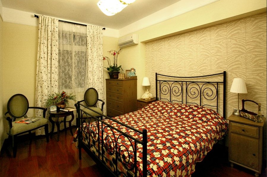 這個臥室里墻紙與布藝呼應起來,簡約而富有北美文化的想象力。