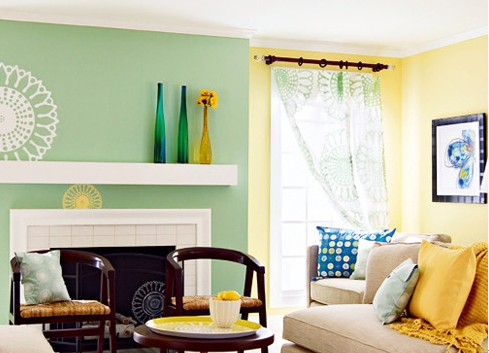 客廳淡綠與玫紅色彩元素的加入,如同將初春里的小花小草挪到了家中。局部色彩的點(diǎn)綴營(yíng)造出春季的清新爛漫。壁爐區(qū)域是房間的焦點(diǎn)位置,將它刷成了白色,作為淡綠與玫紅的背景墻。清新的綠色/溫暖的黃色/甜美的玫紅,都為房間注入了春天的氣息,清幽淡雅。