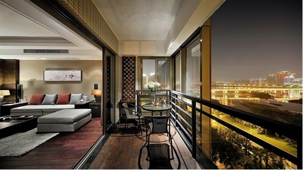 陽臺的出來大體上與整個建筑物材料相呼應之外,又使用了傳統(tǒng)的中式花格與室內(nèi)的裝飾相呼應,很好的起到了室內(nèi)外想承接的作用,也看出設計師對細節(jié)的把握相當?shù)轿弧?/p>