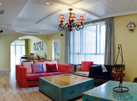 空間顏色豐富多彩,餐廳的格局上考慮到視覺的開闊性,家具的選擇造型簡(jiǎn)練,不會(huì)顯得很局促。