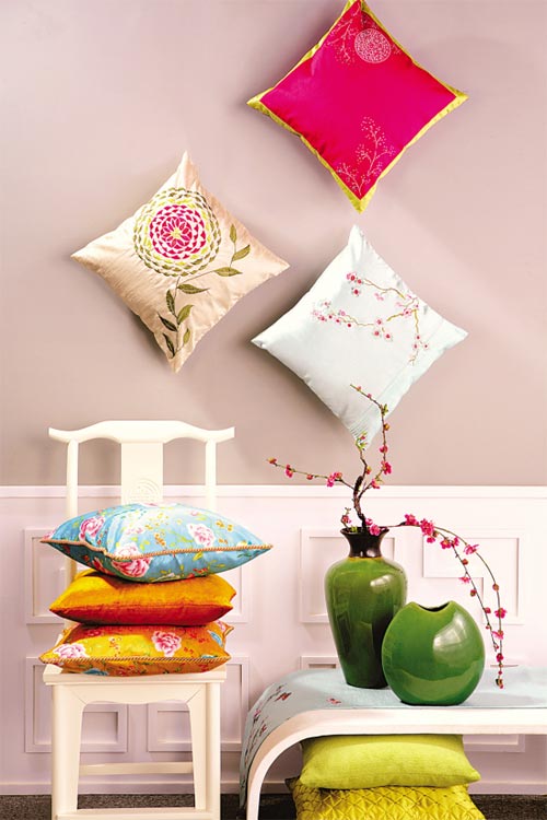 作為居家裝飾中不可或缺的必備單品,抱枕同樣可以令每季的風(fēng)格隨意變換。比如過年時,在餐椅、西式沙發(fā)上隨意點綴幾款牡丹、團花、花鳥刺繡的抱枕,就能令居家風(fēng)格產(chǎn)生亮眼變化,還有中國味頗濃的剪紙、年年有余圖騰的餐具,也足以令這個即將到來的中國年道地有致!