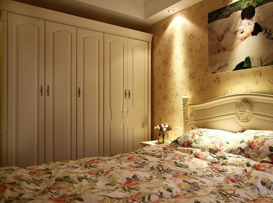 臥室里淡淡的田園風(fēng),讓溫馨感彌漫。一排衣柜可以解除四季衣物的收納問題。