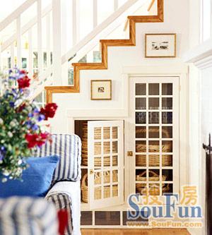 同樣是在樓梯下的位置,電視機安放在這里能有效節(jié)約空間,不過要求空間稍大一些,還要裝得下DVD機、碟片等等。