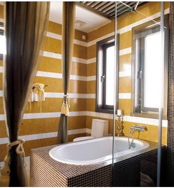 如今洗浴已經(jīng)是一種生活方式,尤其泡澡時(shí)注重周圍環(huán)境的氛圍,通常衛(wèi)生間里的環(huán)境都是冷硬的浴具和磚墻,為了讓洗浴時(shí)心情更加愉悅,不妨在浴缸周圍垂下紗質(zhì)帷幔,在若隱若現(xiàn)中營造浪漫氛圍,而平時(shí)不使用時(shí),也可以用精選的窗簾流蘇墜系扎起來,則又是另一番情調(diào)。