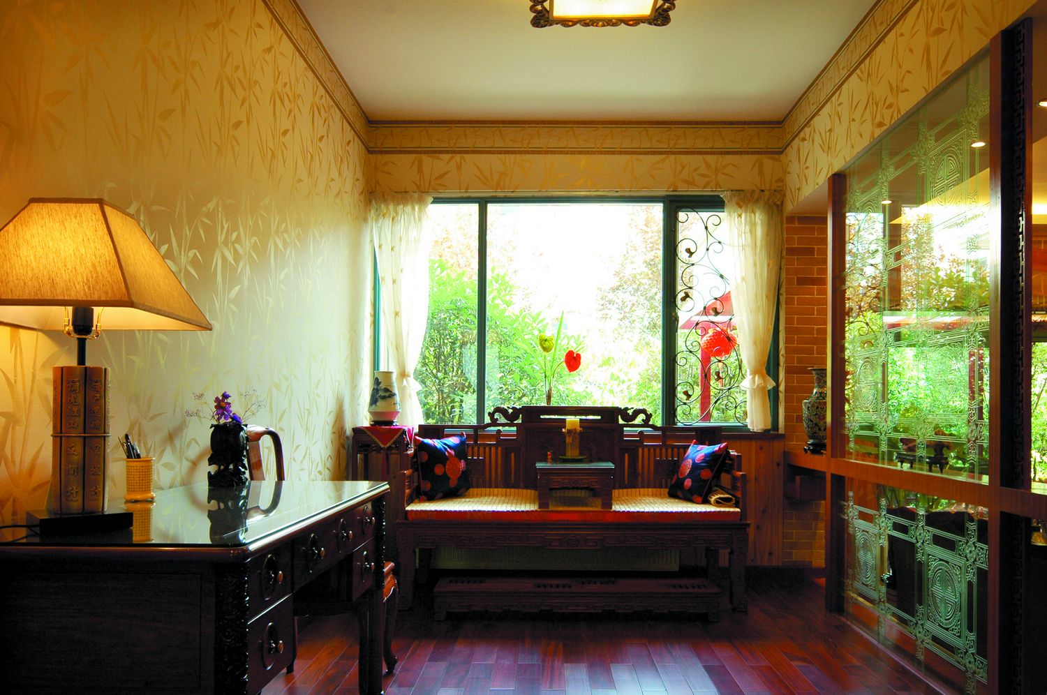 這個(gè)玄關(guān)茶室驚艷了多少人,這個(gè)古典而又價(jià)值不菲的中式羅漢床映稱(chēng)著外面綠意靜心靜神。