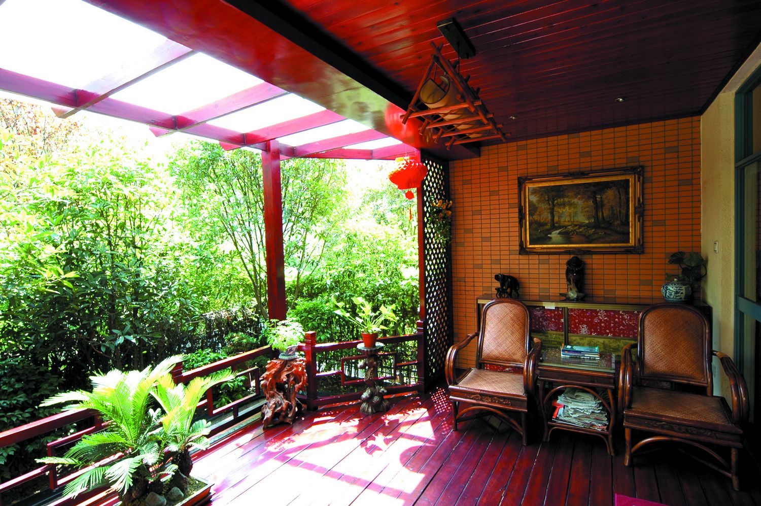 屋外的景觀陽(yáng)臺(tái),運(yùn)用了大量的防腐木,顏色上對(duì)稱(chēng)著室內(nèi)。喜慶的中國(guó)紅其實(shí)并不是中國(guó)傳統(tǒng)色彩的專(zhuān)利,東南亞地區(qū)的裝飾色彩比我們國(guó)內(nèi)來(lái)得更為豐富,尋找人家裝修都會(huì)運(yùn)用鮮艷而跳躍的色彩,這已經(jīng)是他們生活里的一部分,正如他們的熱情一樣。