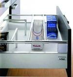 這種1/2抽屜很流行,可是直接擺放物品容易前后晃動(dòng),如果在抽屜屜幫處加裝上護(hù)欄和分隔架,那么就可以大大增加盛放物品的容量,而且無(wú)論放入多少瓶瓶罐罐,在抽屜內(nèi)它們都可以各司其位,不會(huì)顛倒破碎。