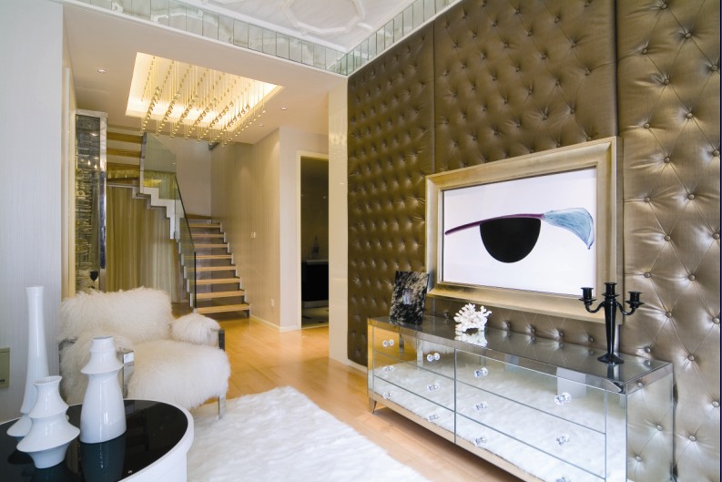 這是一個兩層的復式躍層空間,以簡約的手法做出奢華的感覺。我們到樓上看看