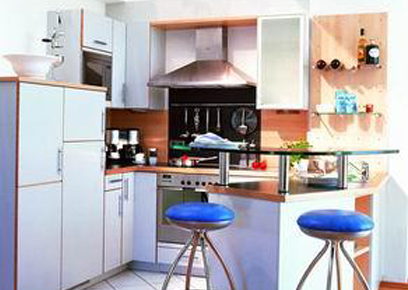 目前市場(chǎng)上櫥柜面層材質(zhì)很豐富,最常見(jiàn)的是不易變形、防火耐磨的人造防火板及大理石、人造石等幾種。櫥柜分為上柜和下柜,下柜有臺(tái)面。市場(chǎng)上比較流行的有三種組合。以臺(tái)面為人造石(麗晶石),櫥柜板為水晶板,這是價(jià)格最高的組合。臺(tái)面為麗晶石,門(mén)板采用防火板的組合屬中等價(jià)位;最便宜的是防火板臺(tái)面和防火板門(mén)板的組合。另外,還有實(shí)木烤板做的櫥柜。大理石具有多種花紋和色澤,外觀華貴,但用在廚房做臺(tái)面則會(huì)由表面的毛孔中浸油,不易清理。人造石色澤多,外觀華麗,又不會(huì)吸油污,顏色豐富,成為高檔的廚房首選臺(tái)面。