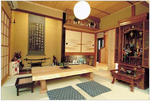 大廳里的和室。墻面的書法,榻榻米鋪設(shè),坐在墊子上品茶,感覺上充滿無限禪意。