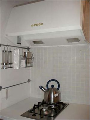灶臺(tái)處的擺設(shè),在灶臺(tái)旁邊的墻壁上安裝了放各種調(diào)味瓶的架子,這樣瓶瓶罐罐就可以放在旁邊的架子上,而不占用臺(tái)面空間,同時(shí)使臺(tái)面變得整潔而易于打理。