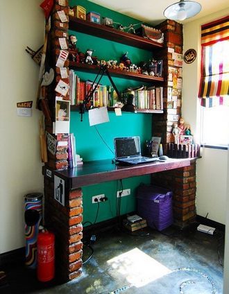 這是工作區(qū)哦,藍色的背景和粗糙的紅磚頭,形成強烈的對比。