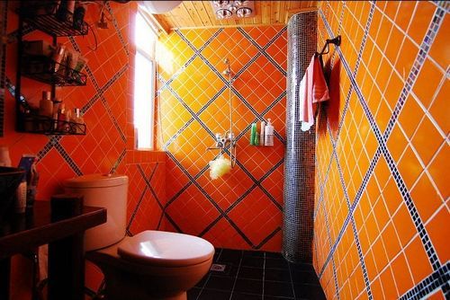 亮麗鮮艷衛(wèi)生間選用了**橘色的仿古磚。