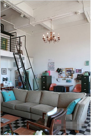 一眼望去挑眼的湖藍色引入眼簾,客廳上上下下,都分布了矩形。鏡子、液晶電視、電視柜、茶幾、靠枕、地板都是方形結(jié)構(gòu)。大大小小的矩形,色彩各異,但也有相同的特征,那便是讓家居裝修呈現(xiàn)一種異常的完整感。條條框框的菱形讓白色墻壁形成不同色塊的分隔,增加色彩和空間的層次感。小小的水晶吊燈填補了上層過于空曠的空間。