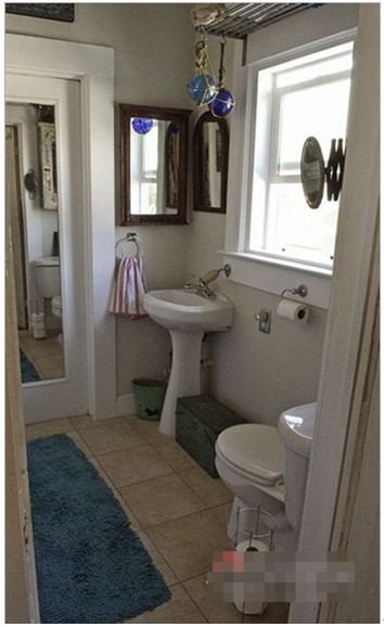 浴室空間狹小沒有過多的收納空間,簡單的實用性與設(shè)計,空間的視覺還是不錯,大窗戶顯得整潔明亮。