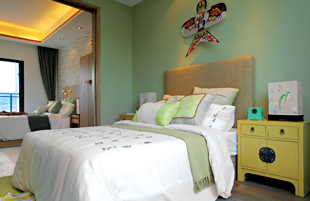 臥室的整體色調(diào)如果用紫色調(diào)的話會(huì)讓人有壓抑感,紫色確實(shí)能帶來沉靜、浪漫之感,但如果臥室大面積涂刷成紫色,就會(huì)讓整個(gè)空間色調(diào)變深、光線變暗,難免讓人感到壓抑,影響人們的心情。另外,濃重的粉紅色和紅色也不宜大面積作為臥室主色調(diào)。因?yàn)檫@種顏色會(huì)讓人處于興奮狀態(tài),長(zhǎng)久居住會(huì)讓人感到煩躁,并出現(xiàn)情緒不穩(wěn)的狀況。如果新婚夫婦已經(jīng)將墻壁刷成了紅色,不妨用白色的裝飾來點(diǎn)綴,以舒緩紅色帶來的視覺沖擊。臥室顏色最好以暖色調(diào)、淺色系為主,淡藍(lán)、鵝黃都是不錯(cuò)的選擇。